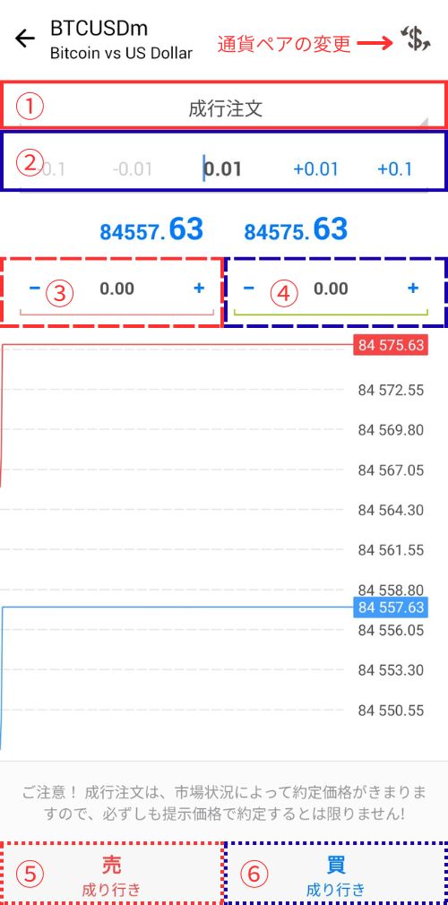 | ⑥ | 買で取引開始 |