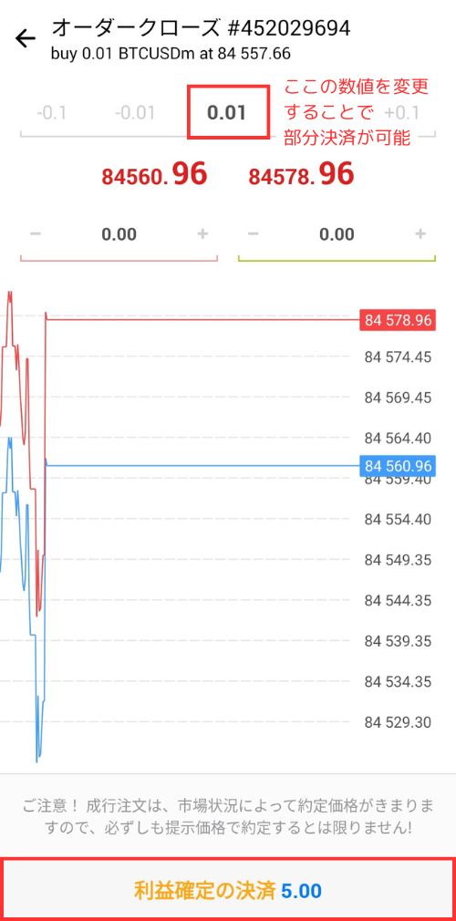 | ⑤ | 売で取引開始 |
