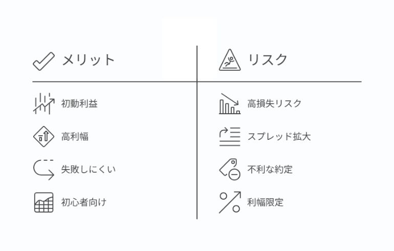 といった業者ごとの仕様によって、取れる戦略やリスクの大きさが大きく変わります。