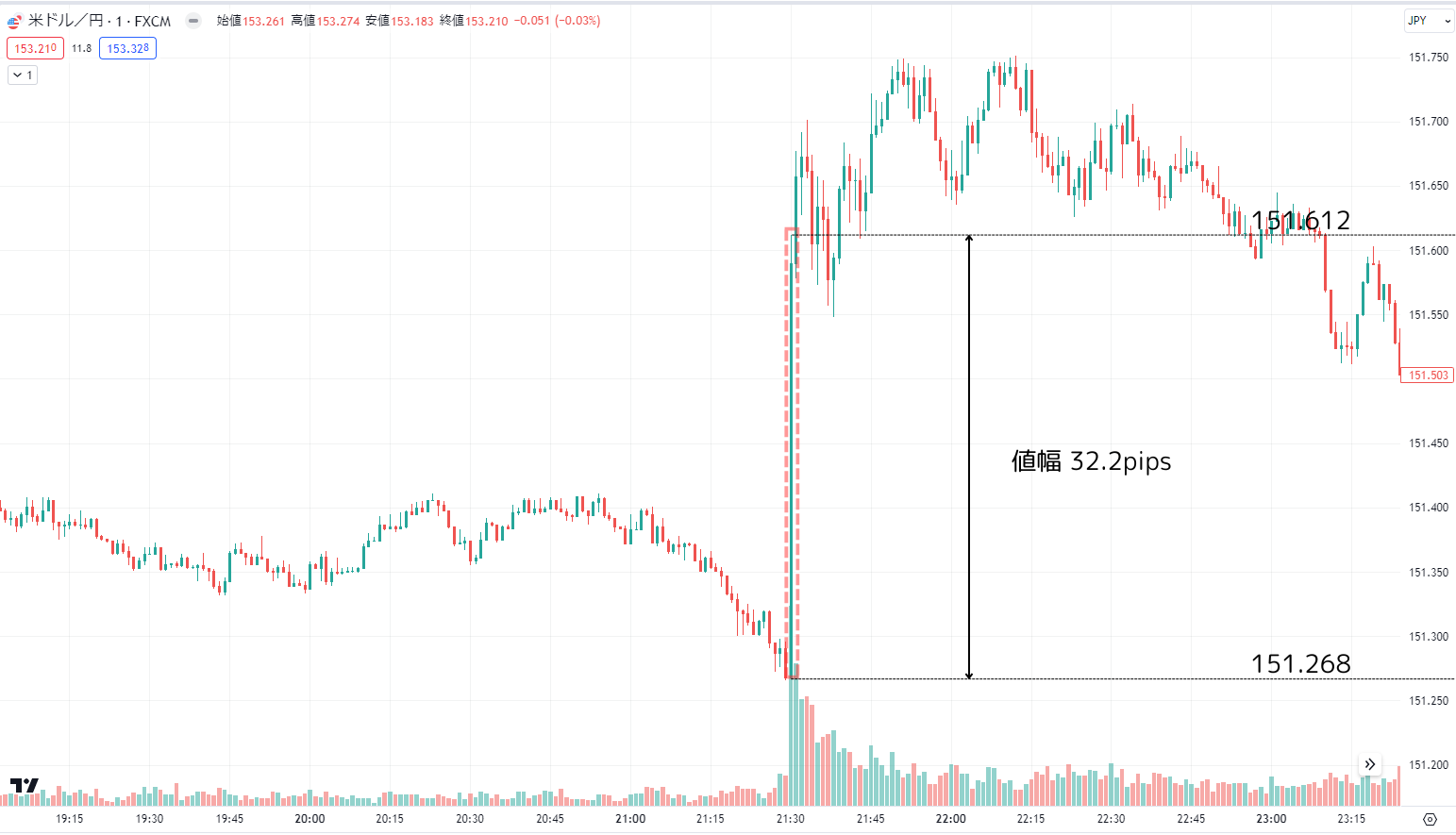 例えば、注目度の高い指標発表時には、ドル円が50〜100pips程度動くことも珍しくありません。